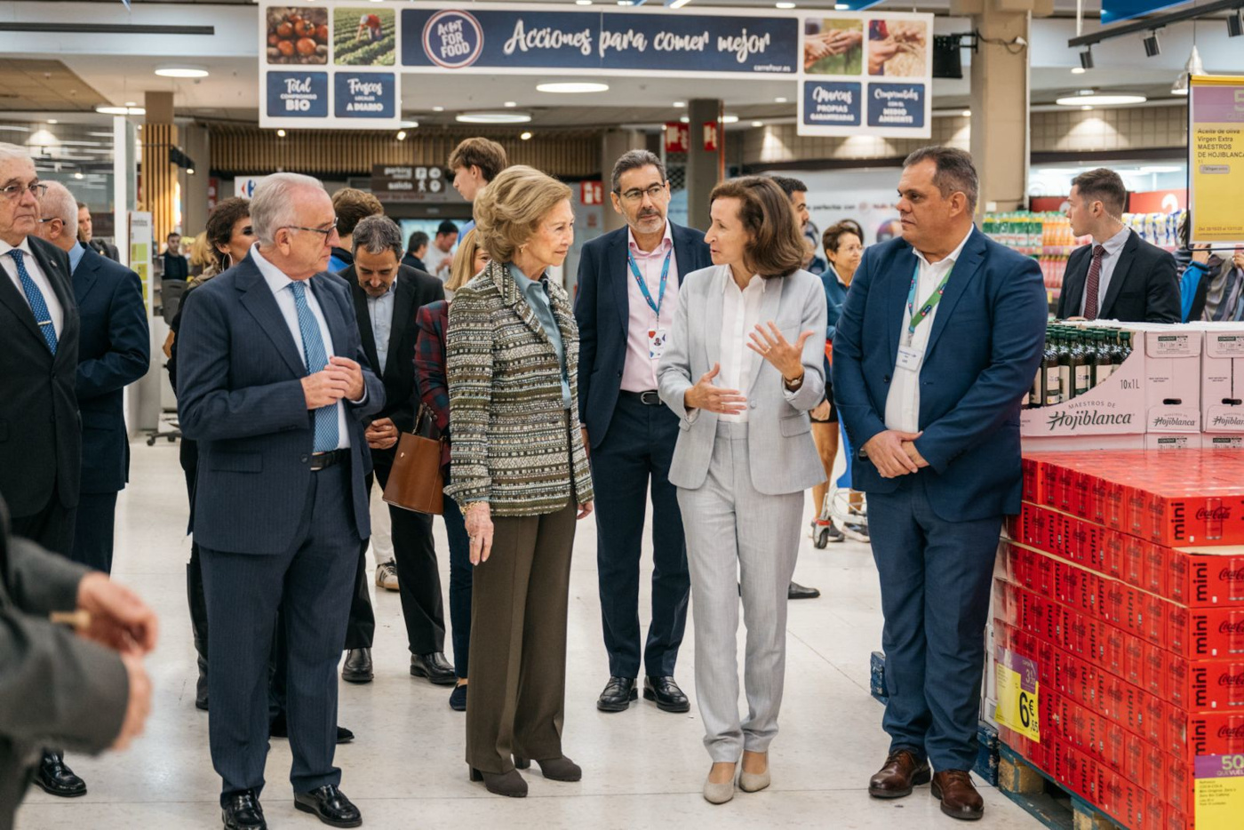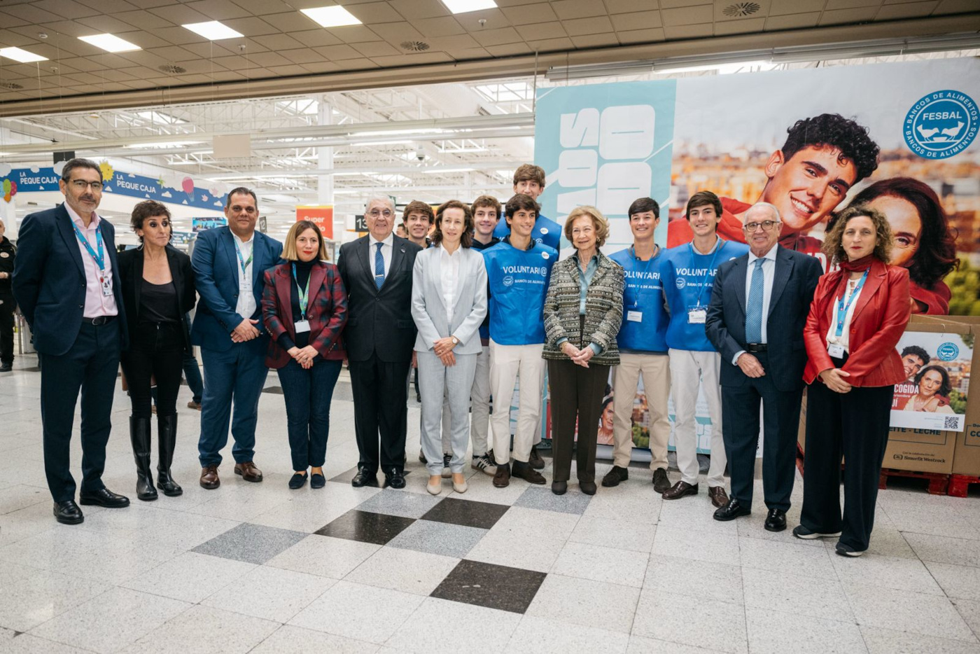 Acompañada por representantes de FESBAL y por un grupo de voluntarios, S.M. la Reina Doña Sofía ha visitado un supermercado Carrefour, uno de los puntos de donación situados en Madrid, donde ha saludado a los equipos y al personal. La iniciativa tiene como objetivo alcanzar el equivalente a 10 millones de kilos de alimentos, destinados a atender a más de un millón de personas vulnerables en todo el país.